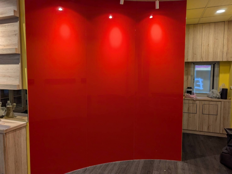 烤彎弧玻璃加烤漆 竹北橙智教學中心