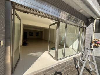 本工程施作鋁門窗安裝,門窗型材及尺寸依設計圖說規定辦理。施工前須確認門窗洞口尺寸、牆面垂直度及水平度,確保安裝位置精準。安裝時,鋁門窗型材以膨脹螺栓或專用固定件固定於牆體,接縫處施作防水矽利康或密封條,以達防水、防氣及結構穩定要求。安裝完成後,需進行開關測試、密封檢查及整體外觀檢查,確保門窗啟閉順暢、固定牢固、無變形。